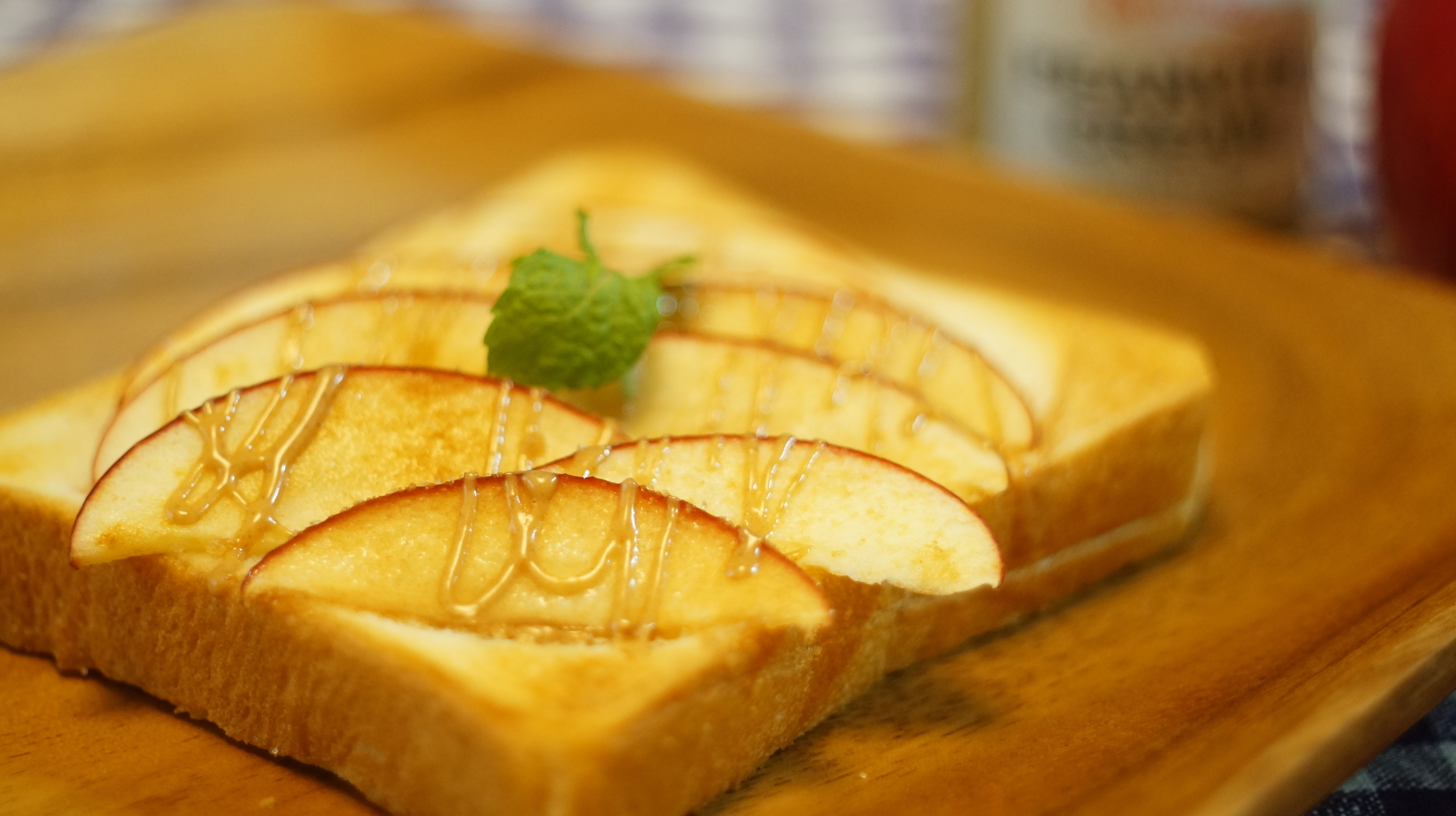 ピーナッツクリームビタートーストにシャキシャキリンゴをトッピング。シナモンの香りがおいしさを引き立てます。