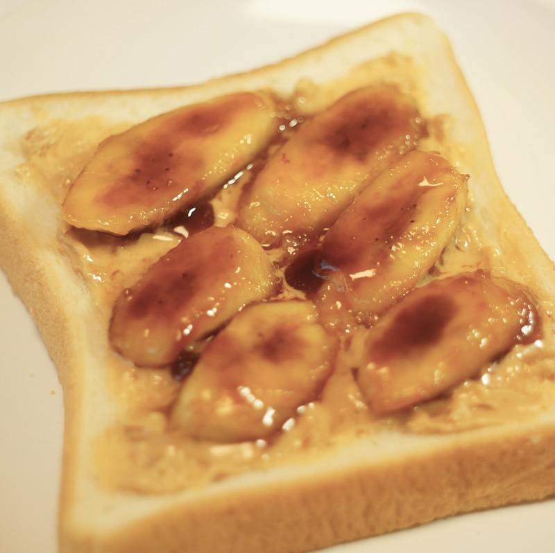 4. 食パンにお好みのピーナッツクリームを塗りバナナをトッピングする